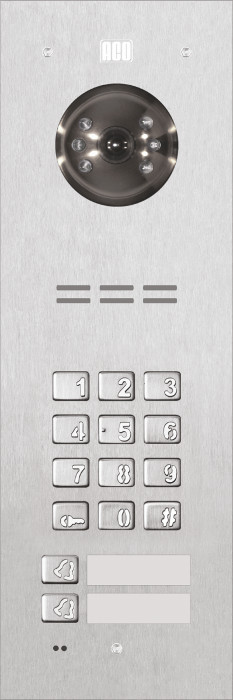 Wideodomofon cyfrowy z zamkiem szyfrowym, czytnikiem breloków oraz 2 przyciskami.
