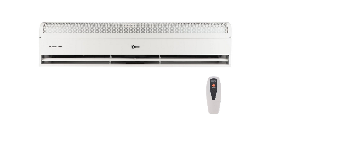 - Bezprzewodowe sterowanie pilotem- Dzięki pilotowi istnieje możliwość zdalnego sterowania urządzeniem. Zarówno trybem pracy: zimny/ciepły, jak i prędkością pracy wentylatora kurtyny.