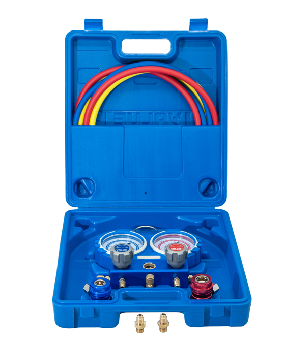 Wąż serwisowy : czerwony, niebieski, żółty 1/4"-1/4" kątowe Długość węży 150 cm