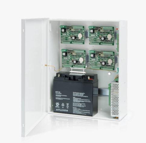 Obudowa wyposażona jest w trzy szyny DIN, buforowy zasilacz prądu stałego oraz łącznik antysabotażowy. Dostęp do wnętrza obudowy jest chroniony przez drzwiczki mocowane na wkręty. Obudowa wykonana jest z blachy stalowej pomalowanej proszkowo na kolor biały.