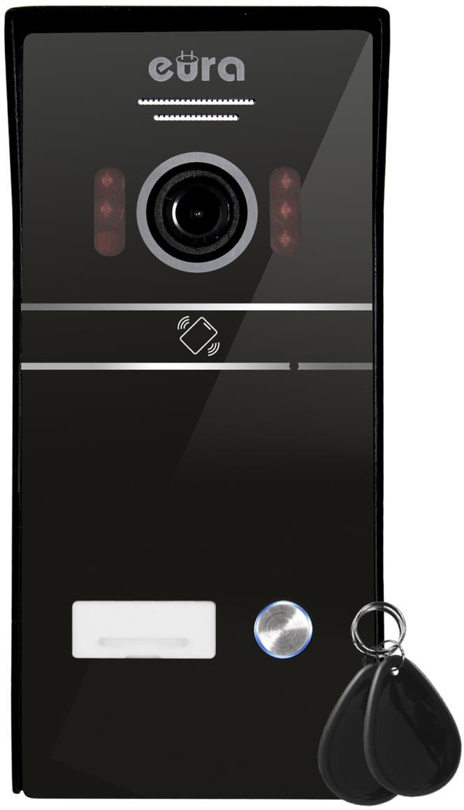 Montowana natynkowo kaseta zewnętrzna idealnie mieści się na wąskim słupku. Wykonana jest ze stopu aluminium i jest odporna na opady atmosferyczne (stopień ochrony – IP65). Kasetę wyposażono w kamerę rejestrującą obraz w rozdzielczości Full HD 1080p, z obiektywem o poziomym polu widzenia 110º i pionowym 60º. Wejście na posesje może być realizowane za pomocą czytnika zbliżeniowego obsługującego breloki i karty pracującego w standardzie Mifare 13,56 MHz. Dodatkowo kaseta zewnętrzna posiada podczerwone oświetlenie nocne.