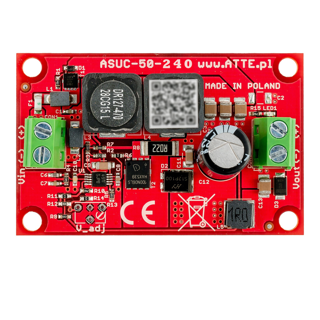 ASUC-100-AD0-OF to wysokosprawna, nieizolowana przetwornica DC/DC podnosząca napięcie. Przetwornica pozwala na pracę w szerokim zakresie napięć wejściowych i posiada precyzyjną regulację napięcia wyjściowego. Typowym zastosowanie mmodułu jest wytwarzanie napięcia zasilającego PoE48 VDC z napięcia 12 VDC lub 24 VDC pochodzącego z zasilacza buforowego.