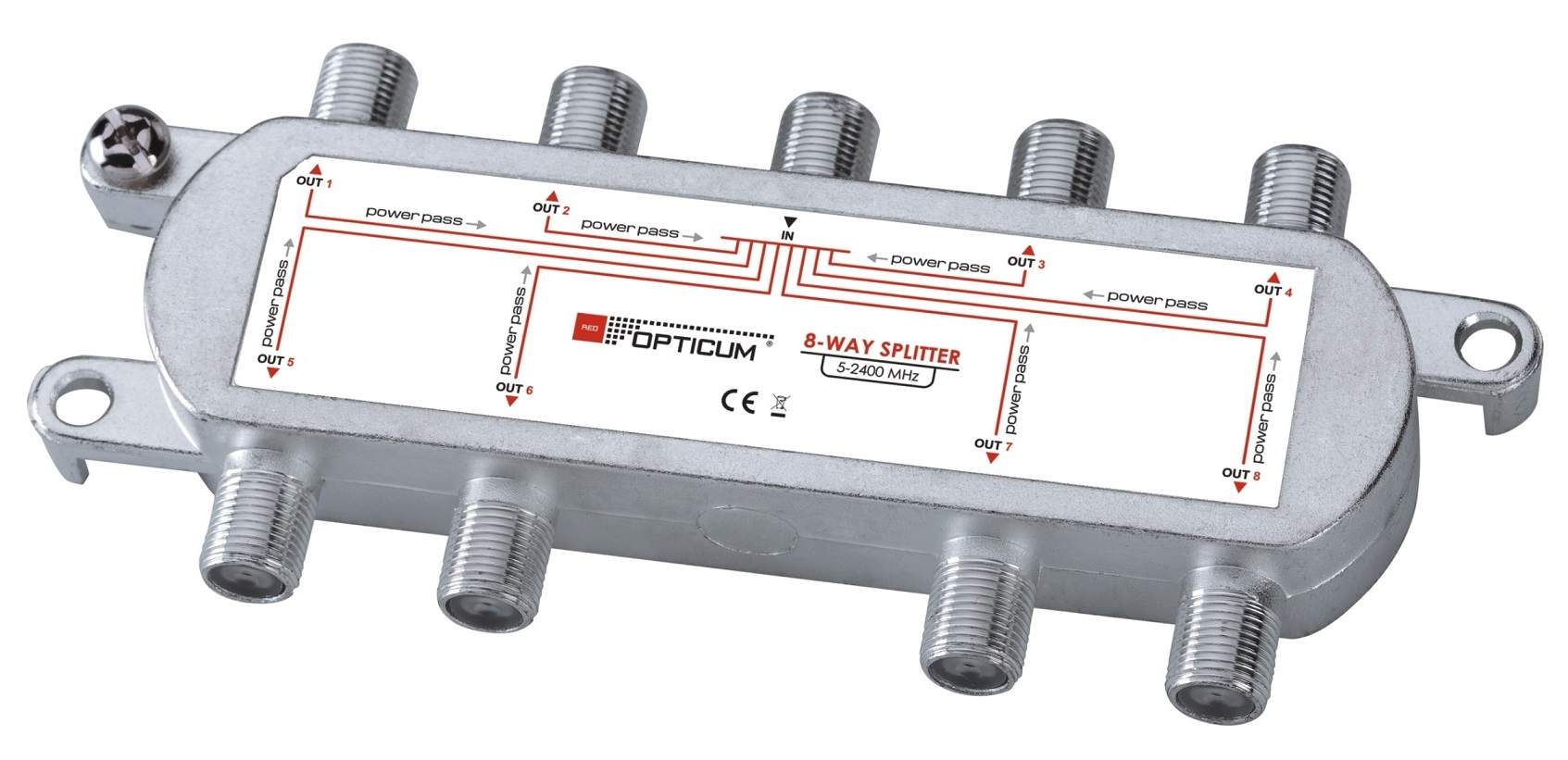 Rozgałęźnik ośmiokrotny przeznaczony dla DVB-T/T2, DVB-S2, do użytku wewnętrznego.