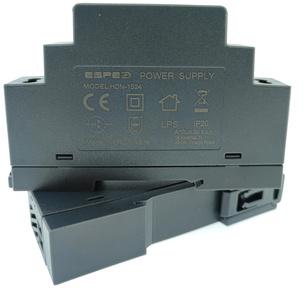 ESPE HDN-1524 to wysokiej jakości, wydajny zasilacz impulsowy w obudowie plastikowej do montażu na szynie DIN TS35 mm o szerokości 1U. Perforowana obudowa zapewnia dobrą wentylację, a trymer pozwala na dokładne wyregulowanie napięcia dla skompensowania spadku napięcia na przewodach.