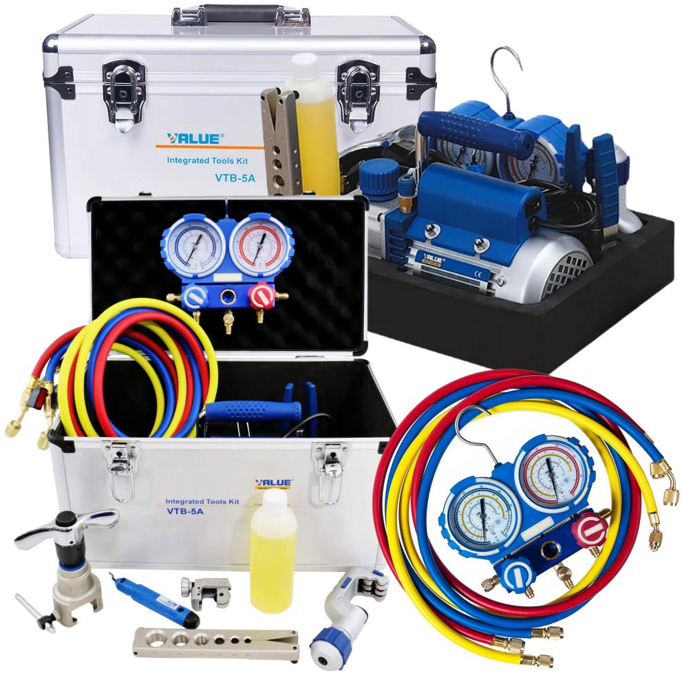 Zestaw narzędzi serwisowych do klimatyzacji VALUE VTB-5A w praktycznej, aluminiowej walizce - specyfikacja techniczna: